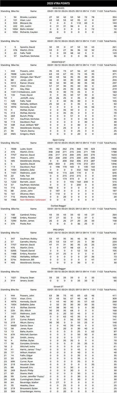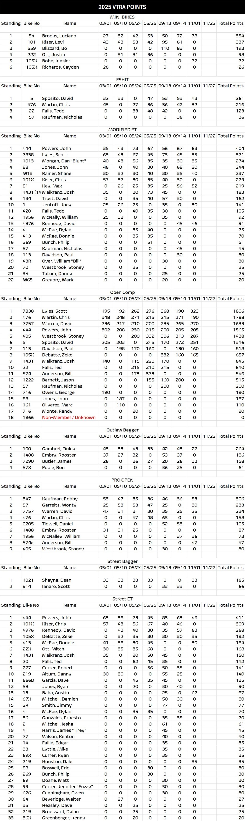 Qualifying points will be awarded to all competitors. The quickest bike or lowest E.T during qualifying will be considered # 1 qualifier for points earning. The #1 qualifier will earn 125 points .