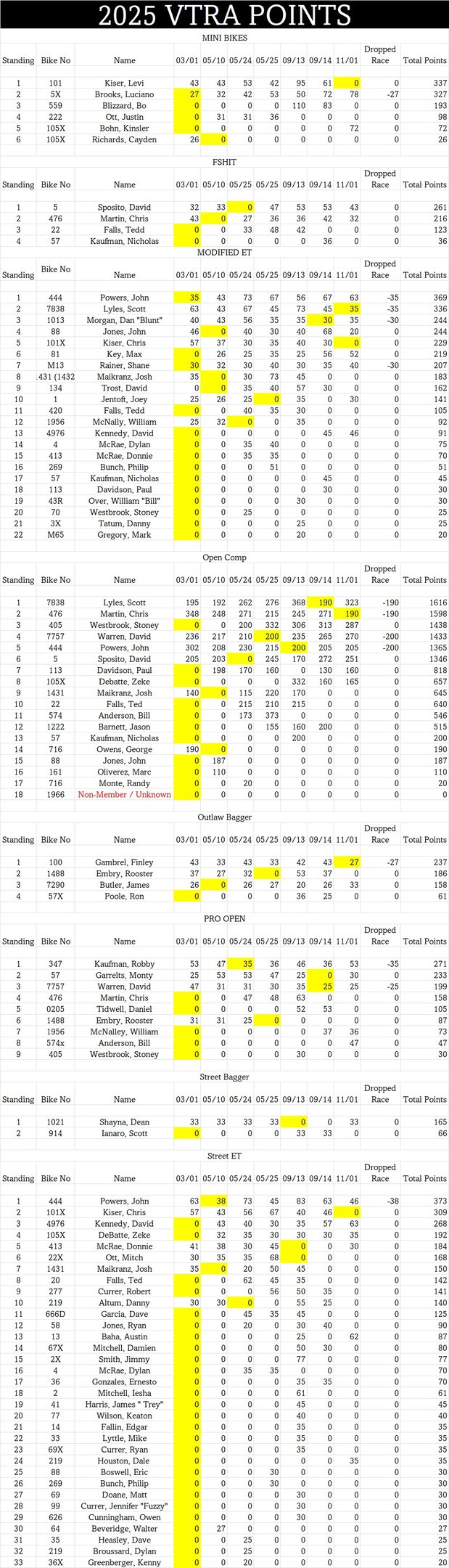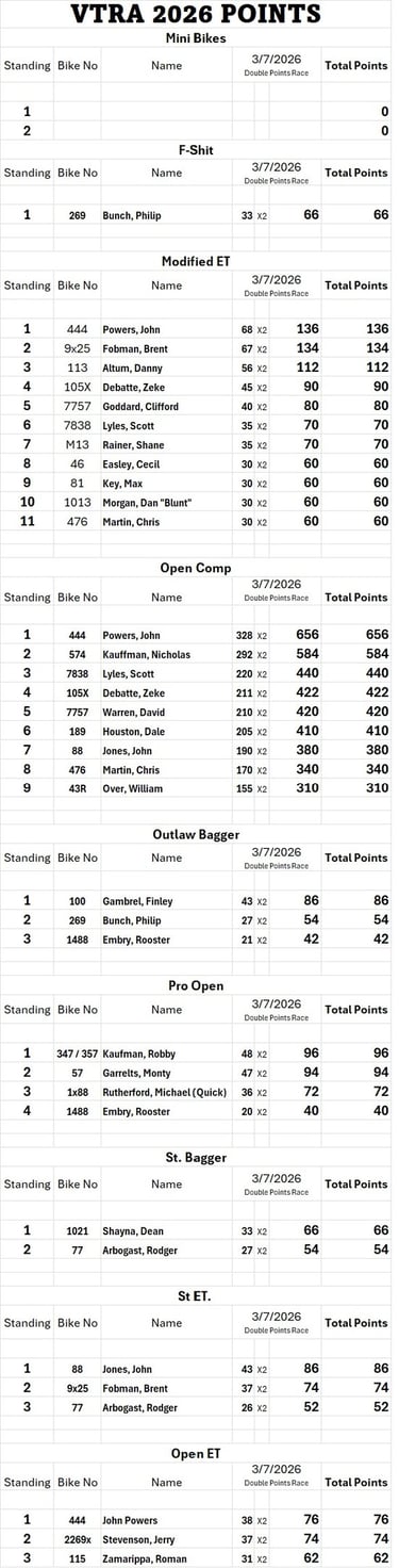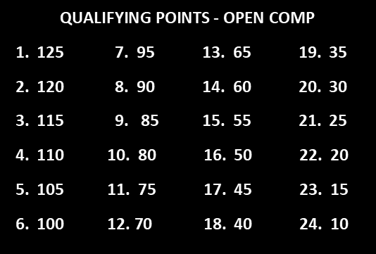 Qualifying points will be awarded to all competitors. The quickest bike or lowest E.T during qualifying will be considered # 1 qualifier for points earning. The #1 qualifier will earn 125 points .